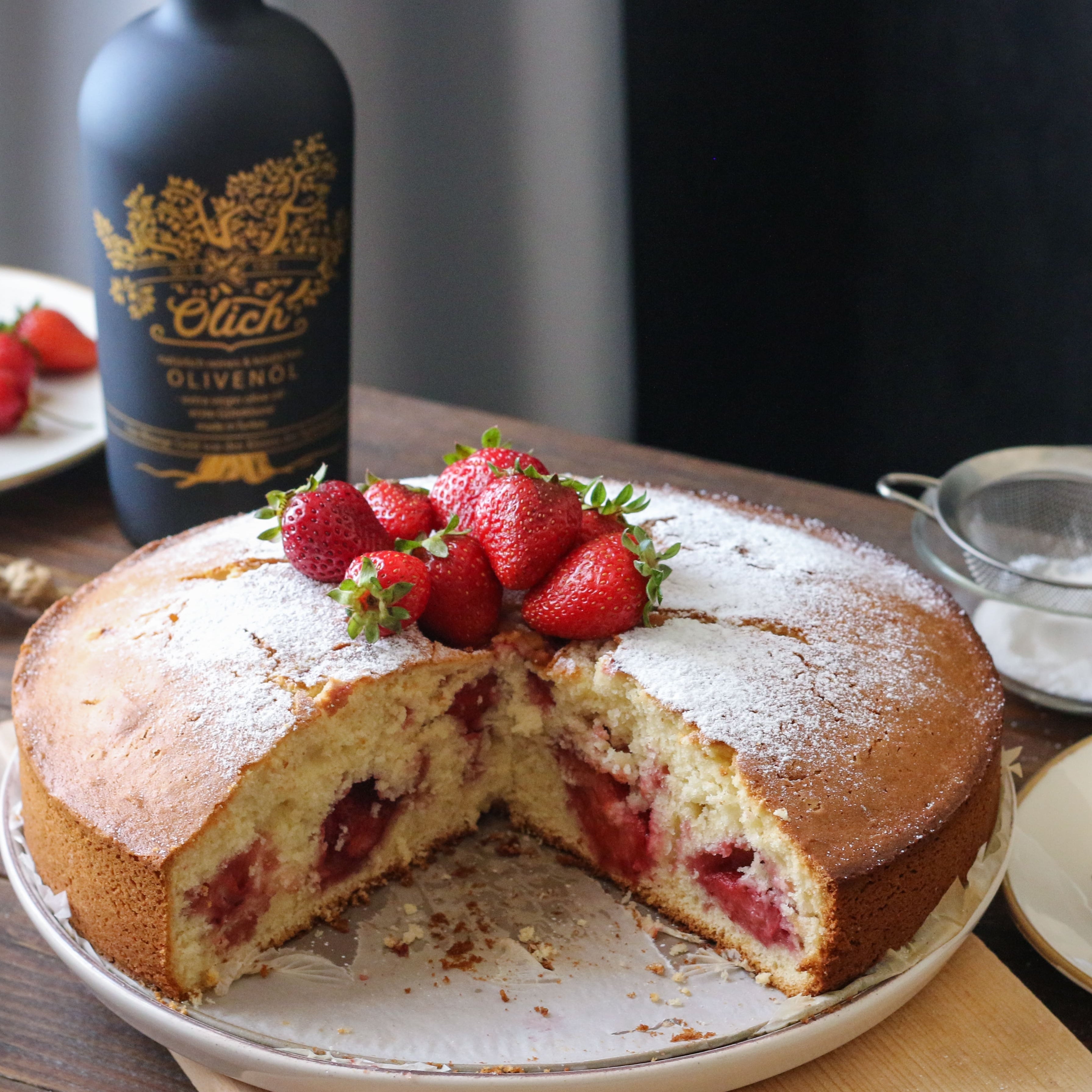 Sommerlicher Erdbeerkuchen mit Olivenöl